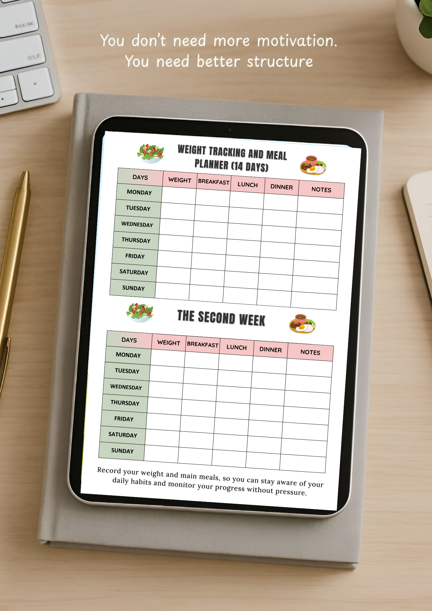 ⚖️ Weight Tracking & Meal Planner (14 Days)