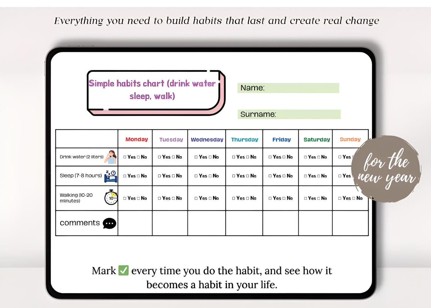 It focuses on three gentle foundations: drinking enough water, getting restful sleep, and moving your body through light walking. By checking in daily, you build awareness and consistency in a calm, supportive way.